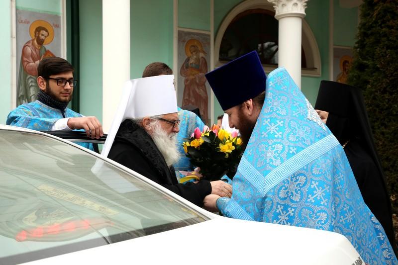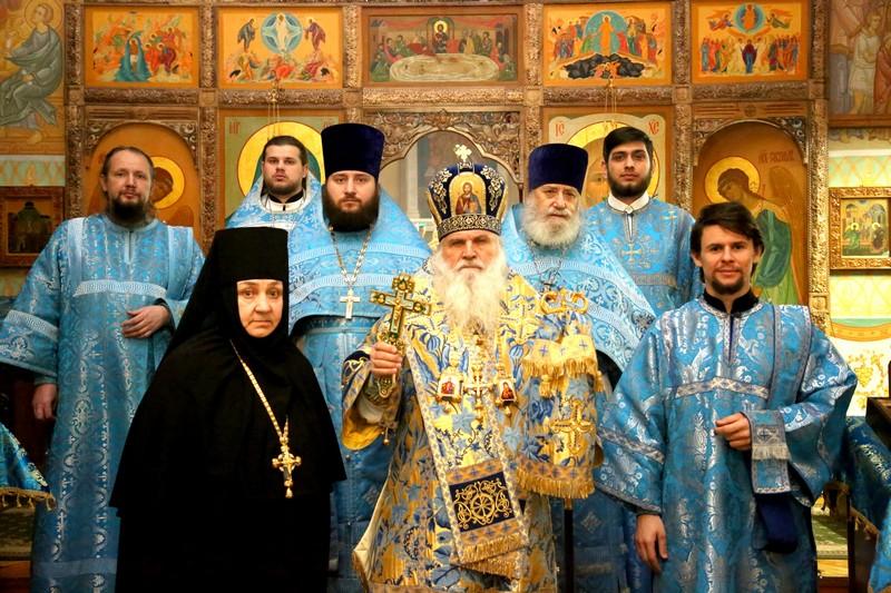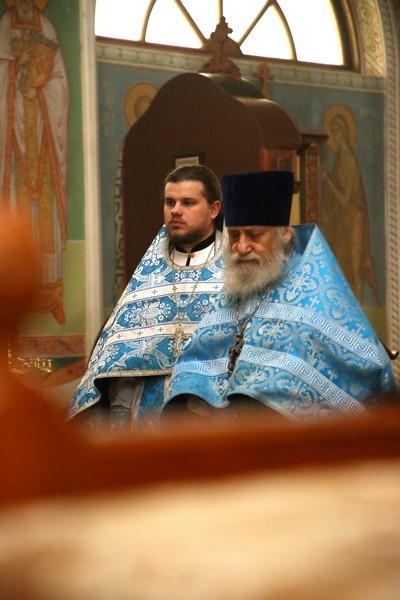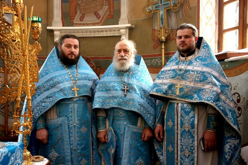 Его Высокопреосвященству сослужили: протоиерей Иоанн Кулешов, иерей Александр Балухатин, иерей Игорь Сладков, диакон Михаил Межовиков, диакон Валерий Рыжов, диакон Петр Гнатик.