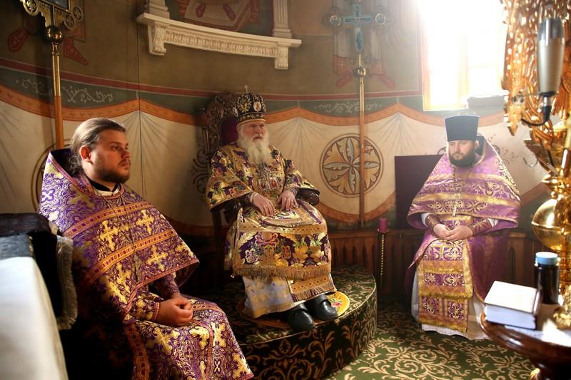 Его Высокопреосвященству сослужили: иерей Александр Балухатин, иерей Игорь Сладков, диакон Михаил Межовиков, диакон Валерий Рыжов, диакон Петр Гнатик.