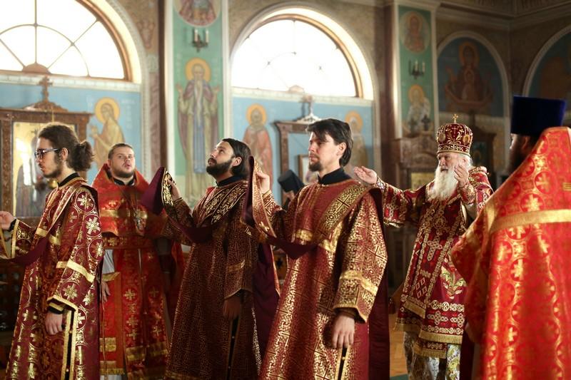 Его Высокопреосвященству сослужили: протоиерей Иоанн Кулешов, иерей Александр Балухатин, иерей Игорь Сладков, диакон Михаил Межовиков, диакон Петр Гнатик, иеродиакон Макарий.