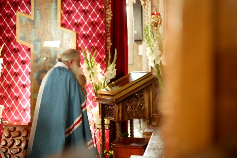 По окончании Литургии митрополит Викентий вознес свою святительскую молитву ко преподобному Феодосию, а затем обратился к молящимся со своим назидательным архипастырским словом, в котором рассказал о подвигах преподобного Феодосия: