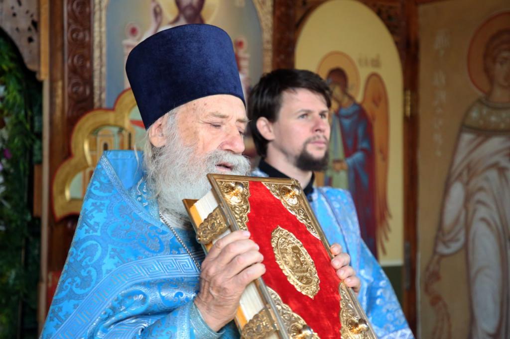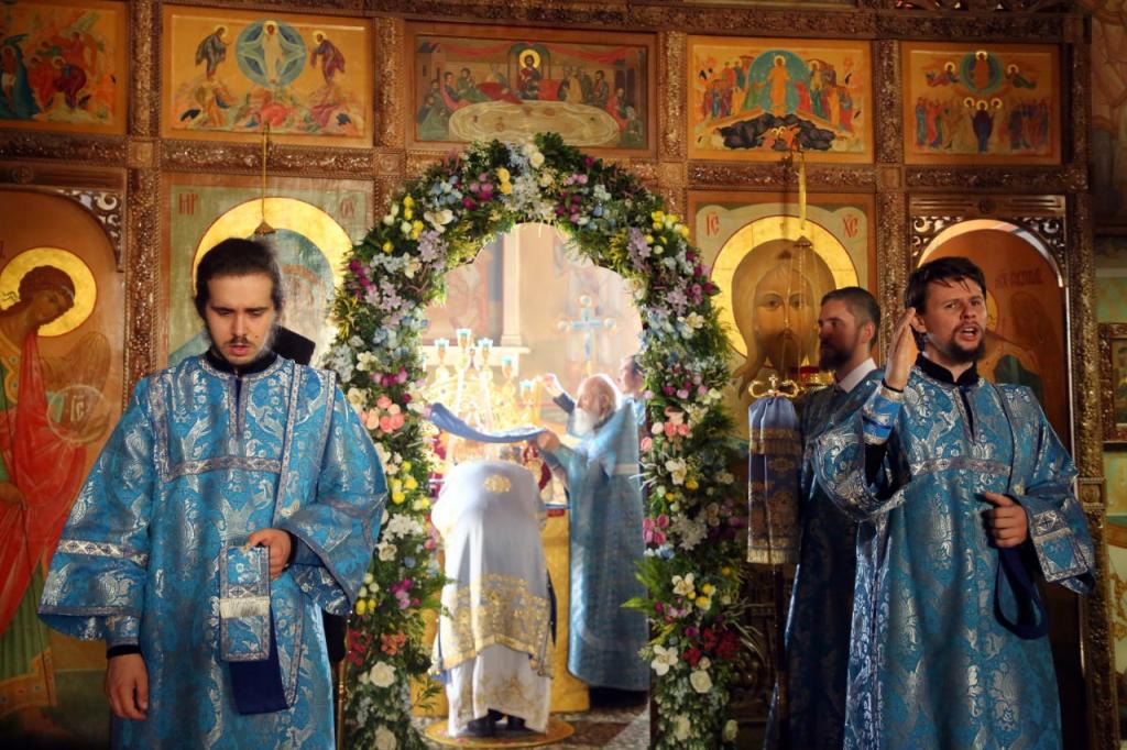 Его Высокопреосвященству сослужили: духовник обители протоиерей Иоанн Кулешов, иерей Игорь Сладков, диакон Тимофей Балухатин, диакон Пётр Гнатик, иеродиакон Макарий.