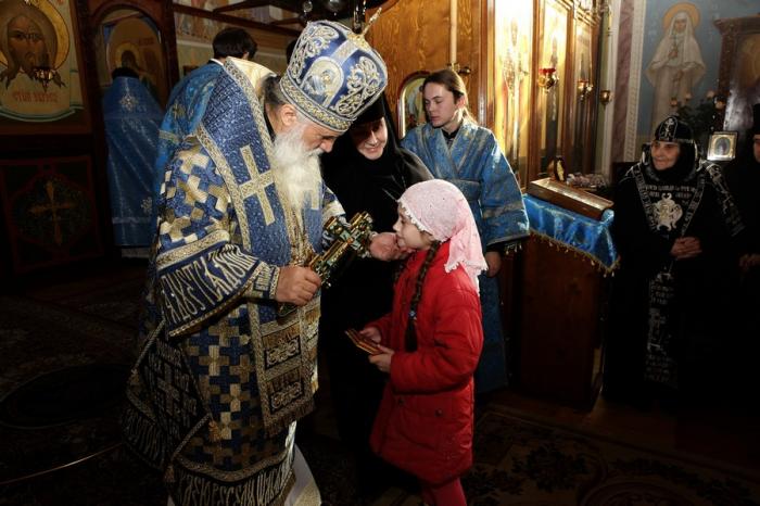 В заключение своей архипастырской проповеди митрополит Викентий поздравил игуменью Екатерину с именинами и вручил на молитвенную память икону Пресвятой Богородицы, привезенную со Святой горы Афон, а также крест с украшениями.