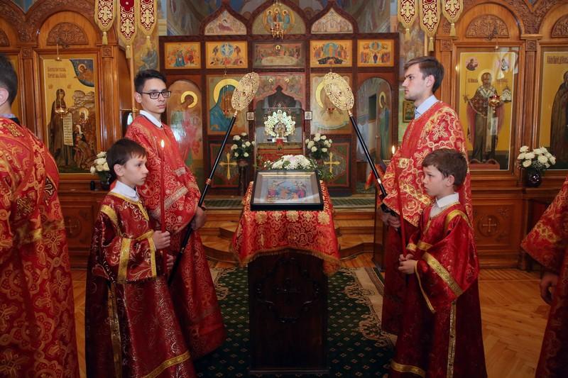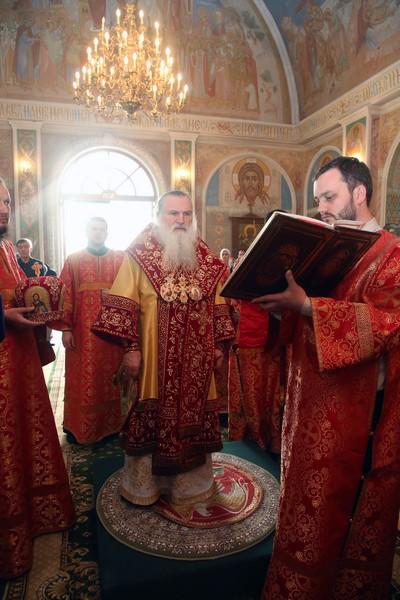 Его Высокопреосвященству сослужили: протоирей Иоанн Кулешов, иерей Александр Балухатин, иеромонах Спиридон (Поздеев), протодиакон Александр Несин, диакон Валерий Рыжов, диакон Игорь Сладков, диакон Петр Гнатик.