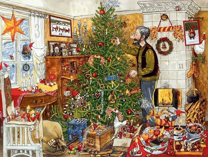 Нет, никаких сверхъестественных чудес. Вернее, чудеса есть, но совершаются они руками обычных людей – соседей, нескольких деревенских семей. Все жалеют Петсона. Приносят ему праздничной снеди. И вот уже торжество, праздничный стол, смех и игры, и Финдус поражает публику своими акробатическими номерами, а дети, разинув рты, смотрят на чудо-ёлку Петсона.