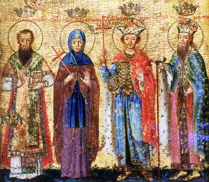 Святые Бранковичи: cвт Максим, прп. Англина, св. Иоанн и св. Стефан Слепой. Икона 1753 г. Никола Нешкович